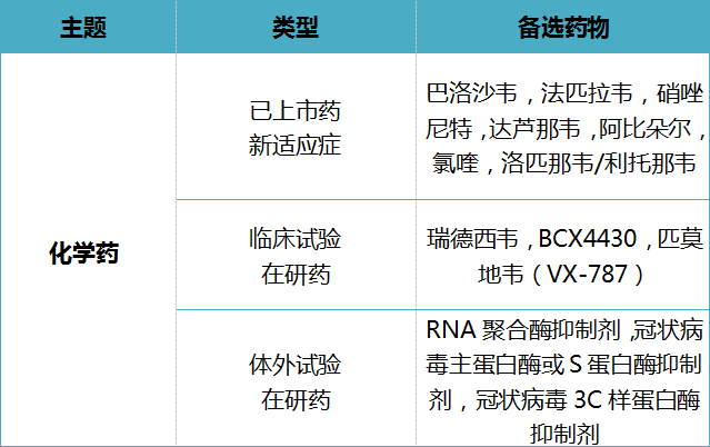 短期聚焦老药新用:重点关注HIV蛋白酶抑制剂、RNA病毒聚合酶抑制剂。