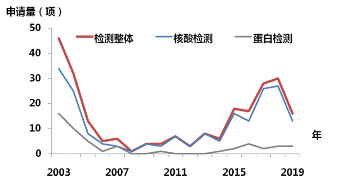 病毒检测技术:利用检测靶点的替换研究其与新型冠状病毒检测的结合可能,提高病原体检测的灵敏度。关注研发新型载体,例如微珠等,并基于微珠PCR的高通量检测技术开发。集成化小型PCR分析仪的研发应侧重于装置的全封闭、一体化,避免气溶胶的产生。(来源:国家知识产权局抗击新型冠状病毒肺炎专利信息分析课题组)